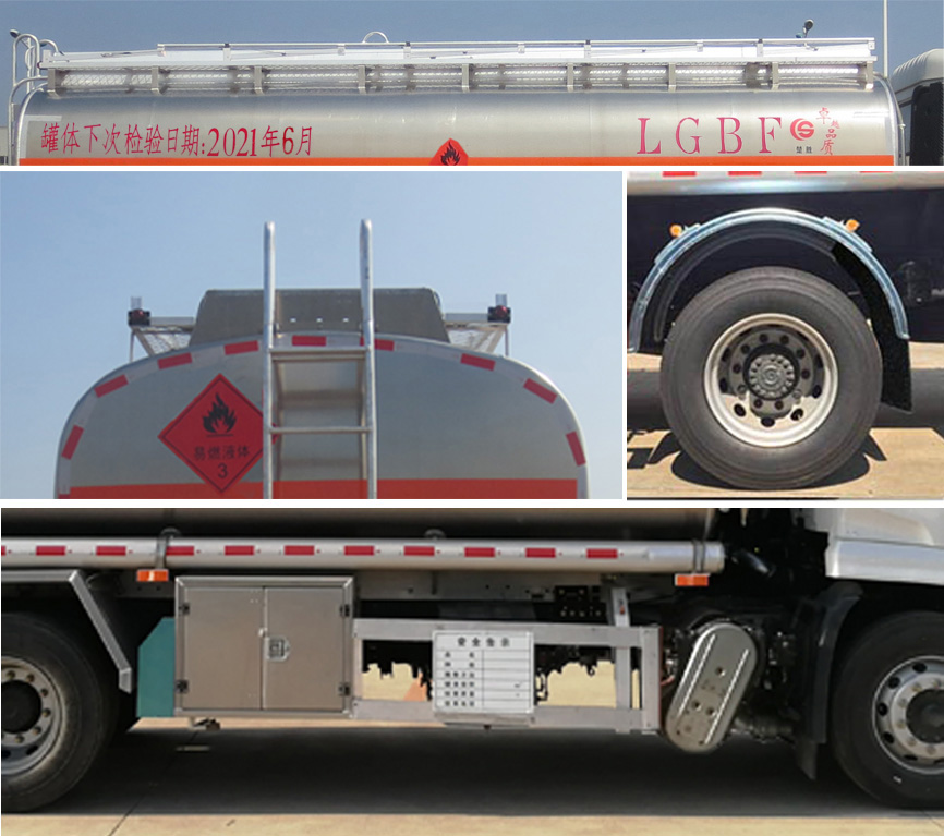 | 配置 | 1、該車適用于危險(xiǎn)品運(yùn)輸,運(yùn)送危險(xiǎn)貨物車輛類型為:FL型,類項(xiàng)號(hào):3。罐體有效容積:16.6立方米,運(yùn)輸介質(zhì):汽油,密度:700千克/立方米,罐體外形尺寸(長(zhǎng)×寬×高)(mm):5700×2300×1600。2、側(cè)/后防護(hù)材料為鋁合金,螺栓連接。后防護(hù)截面尺寸120×60mm,下邊緣離地高500mm。罐體上部選裝上走道,選裝弧形擋泥板,選裝右側(cè)防護(hù)樣式。3、僅采用軸距(mm):4700。后軸采用空氣懸架。隨底盤選裝駕駛室前面罩,選裝側(cè)窗玻璃;駕駛室頂部中間三個(gè)裝飾燈為選裝件;前霧燈為選裝件;駕駛室前臉擾流罩為選裝件。僅選用排氣管前置、限速裝置(限速80km/h)、前輪盤式制動(dòng)及子午線輪胎的底盤;安裝帶有衛(wèi)星定位功能的行駛記錄儀;ABS型號(hào)/生產(chǎn)廠家:3631010-C2000/東科克諾爾商用車制動(dòng)系統(tǒng)(十堰)有限公司。采用的發(fā)動(dòng)機(jī)與油耗值(L/100Km)對(duì)應(yīng)關(guān)系為: B6.2NS6B210/26.5,DDi50E190-60/23.9。 該車后軸為采用空氣懸架.轉(zhuǎn)向輪安裝輪胎爆胎應(yīng)急防護(hù)裝置。該車型可選裝ETC車載裝置. | ||