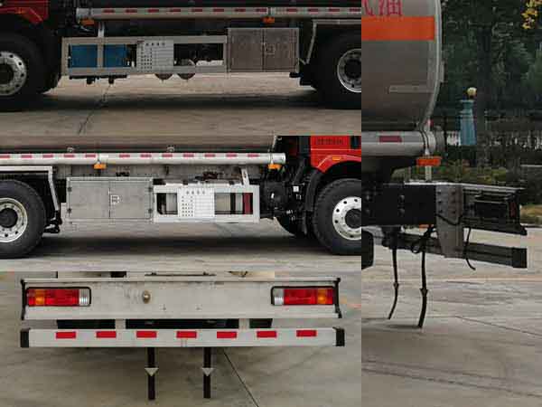 | 配置 | 1、該車適用于危險(xiǎn)品運(yùn)輸,運(yùn)送危險(xiǎn)貨物車輛類型為:FL型,類項(xiàng)號(hào):3。運(yùn)輸介質(zhì):汽油,密度:700千克/立方米。罐體有效容積24.5立方米,罐體外形尺寸(長(zhǎng)×寬×高)(mm):7200×2400×1750。整車外形長(zhǎng)與采用軸距/后懸對(duì)應(yīng)關(guān)系為(mm):10110/4600+1350/2760,10110/4800+1350/2560。2、側(cè)、后防護(hù)材料均為鋁合金,螺栓連接;后防護(hù)截面尺寸(寬×高)(mm)60×120,下邊緣離地高500mm。3、隨底盤(pán)選裝高頂駕駛室,選裝前圍和燈具。僅選用排氣管前置、限速裝置(限速79km/h)、前輪盤(pán)式制動(dòng)及子午線輪胎的底盤(pán);安裝帶有衛(wèi)星定位功能的行駛記錄儀;ABS系統(tǒng)生產(chǎn)廠家:長(zhǎng)春瑞立科密汽車電子有限公司,型號(hào):CM4XL。采用發(fā)動(dòng)機(jī)與油耗值對(duì)應(yīng)關(guān)系為(L/100km):CA6DK1-32E6/37.47,CA6DK1-28E6/37.47。 該車后軸為采用空氣懸架. | ||