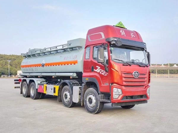 | 其它: | 該車(chē)為危險(xiǎn)品運(yùn)輸車(chē)輛.危險(xiǎn)貨物運(yùn)輸車(chē)輛的車(chē)輛類(lèi)型為AT型車(chē)輛.罐體總?cè)萘?18.6立方米,罐體有效容積:17.7立方米,準(zhǔn)運(yùn)介質(zhì)的最大密度1100千克/立方米.罐體外形尺寸(總長(zhǎng)×直徑)(mm)為8200×1800.側(cè)、后防護(hù)裝置材質(zhì)均為Q235B,連接方式均為:螺栓連接;后下部防護(hù)裝置,斷面尺寸(mm):130×50,下邊緣離地高500mm.僅選用軸距(mm):1900+3800+1350.發(fā)動(dòng)機(jī)與油耗值(L/100km)對(duì)應(yīng)關(guān)系為:CA6DK2-35E65/35.60,CA6DLD-29E6/37.75;該底盤(pán)排氣管前置,安裝前盤(pán)制動(dòng),安裝子午線輪胎,隨底盤(pán)安裝限速裝置,限速79km/h;安裝具有衛(wèi)星定位的行駛記錄儀,安裝EBS,EBS系統(tǒng)控制器生產(chǎn)企業(yè)/型號(hào)為克諾爾制動(dòng)系統(tǒng)(大連)有限公司/EBS5.該車(chē)后軸為采用空氣懸架;該車(chē)型可選裝直接供電ETC車(chē)載裝置;轉(zhuǎn)向輪安裝爆胎應(yīng)急防護(hù)裝置. | ||