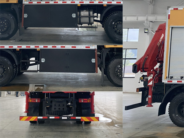 | 其它: | 1、該車主要用于搶險救災(zāi)、賽事活動等的應(yīng)急照明支援;主要專用裝置:照明系統(tǒng),發(fā)電機(jī)組,吊機(jī)等;廂體頂部密閉,不可開啟。2、側(cè)防護(hù)為裙邊結(jié)構(gòu),材料Q235;后防護(hù)材料采用Q235,螺栓連接,截面尺寸125×60mm,下邊緣離地高485mm。3、ABS型號/生產(chǎn)廠家:3631010-C2000/東科克諾爾商用車制動系統(tǒng)(十堰)有限公司。 | ||