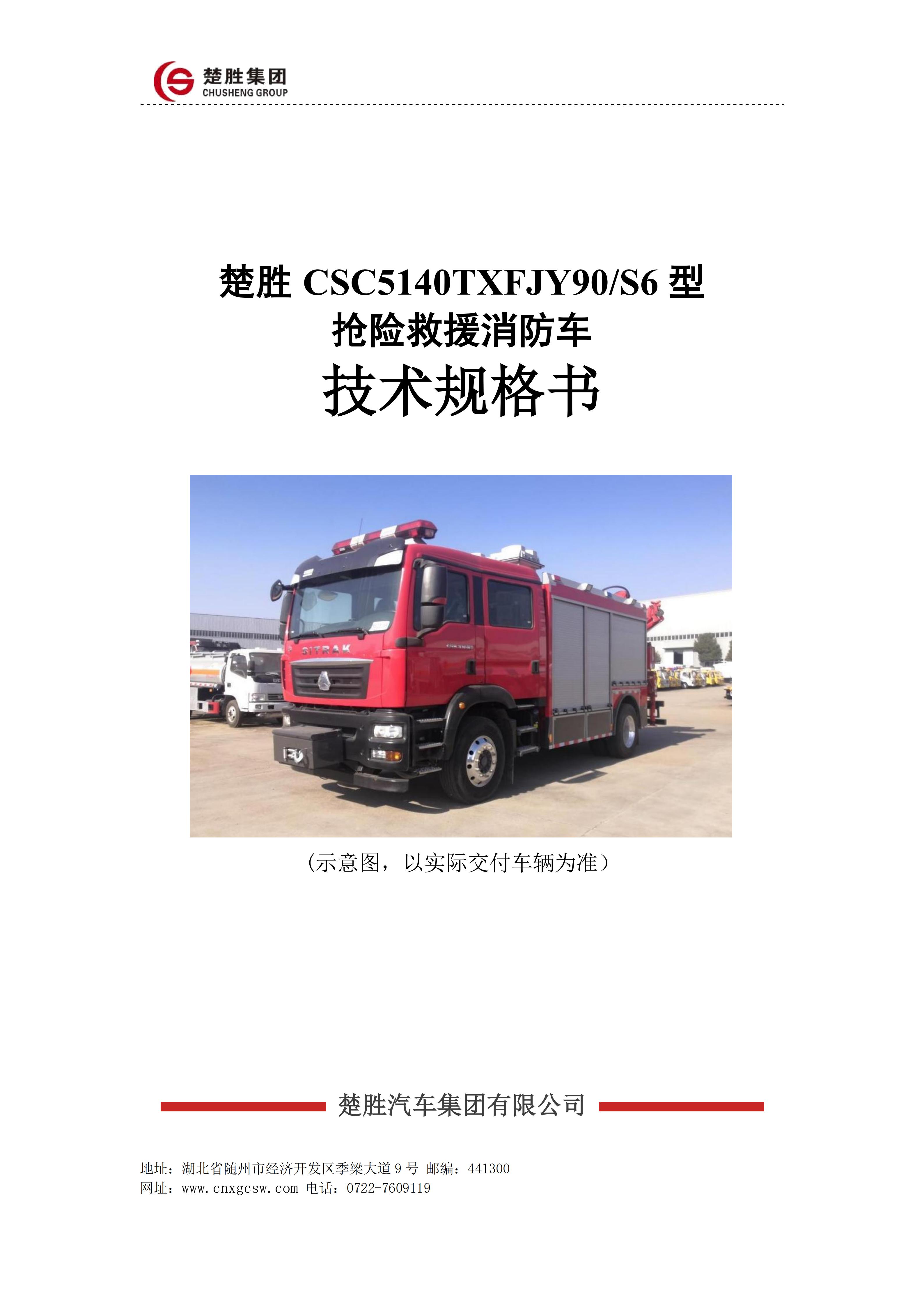 楚勝牌CSC5140TXFJY90/S6型搶險救援消防車