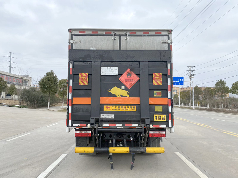 | 其它: | 1、該車適用于運(yùn)輸危險(xiǎn)品,運(yùn)輸具有獨(dú)立容器(瓶)包裝的物品,運(yùn)送危險(xiǎn)物品類項(xiàng)號(hào):3。廂體頂部封閉,不可開啟。2、側(cè)、后防護(hù)材料均為Q235,螺栓連接,后防護(hù)截面尺寸(mm)φ125,下邊緣離地高460mm。選裝后部無尾板,選裝后部無尾板時(shí)后防護(hù)材料為Q235,焊接,截面尺寸(mm)100×50,下邊緣離地高460mm。3、僅選用排氣管前置、限速裝置(限速80km/h)、前輪盤式制動(dòng)及子午線輪胎的底盤,轉(zhuǎn)向輪安裝輪胎爆胎應(yīng)急防護(hù)裝置。安裝帶有衛(wèi)星定位功能的行駛記錄儀。ABS系統(tǒng)控制器型號(hào)/生產(chǎn)廠家: ABS/ASR-24V-4S/4M/襄陽東風(fēng)隆誠(chéng)機(jī)械有限責(zé)任公司。發(fā)動(dòng)機(jī)/油耗值(L/100km)對(duì)應(yīng)關(guān)系為: ZD30D16-6N/17.2,YCY24140-60/16.5, NV30-C6G/17.3, CY4SK261/17.4, YCY30165-60/17.5, CY4BK361/17.9。選裝ETC。隨底盤選裝駕駛室。廂體側(cè)面選裝開門型式及位置,選裝不帶側(cè)開門,選裝廂體樣式,廂體側(cè)面板選裝開百葉窗。僅采用軸距3308mm。尾板收起狀態(tài)水平長(zhǎng)度為290mm,尾板質(zhì)量為420kg。 | ||