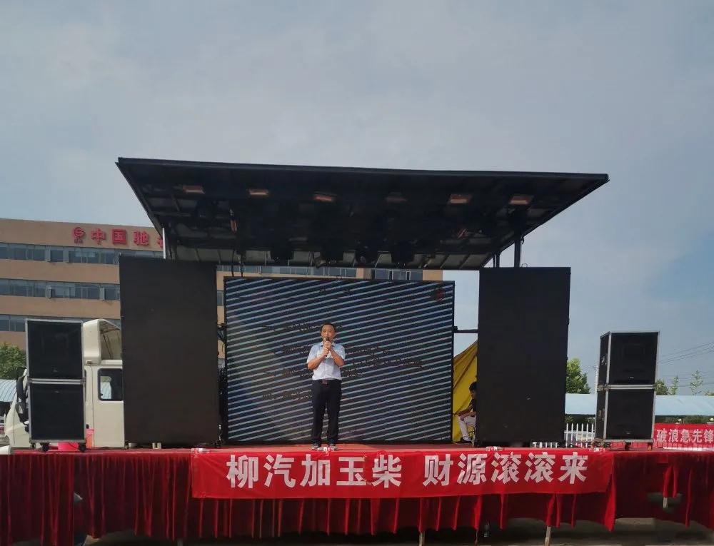 烈日下美女們火辣辣的開場舞之后湖北加貝的代表賀總和楚勝集團(tuán)的代表董總分別上臺講話,對此次活動的舉辦以及乘龍L3“龍騰天下”灑水車的上市表示大力的支持和美好的愿景!
